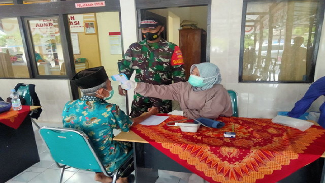 Wonogiri. – Pastikan kegiatan penyaluran Bantuan Langsung Tunai Dana Desa (BLT-DD) yang dilaksanakan sesuai protokol kesehatan, Babinsa Purwoharjo, Koramil 23/Karangtengah Koptu Suyanto melaksanakan pemantaian dan pendampingan, Sabtu 04/09/2021.