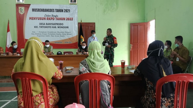 Wonogiri. – Batuud Koramil 23/Karangtengah, Peltu Khomaedi dan rekan Babinsa, bersama dengan anggota Polsek Aiptu Joko, melaksanakan pendampingan dan pengamanan dalam kegiatan penyaluran Bantuan Sosial Tunai (BST) yang bertempat di Pendopo Kecamatan Karangtengah, Rabu 20/01/2021.