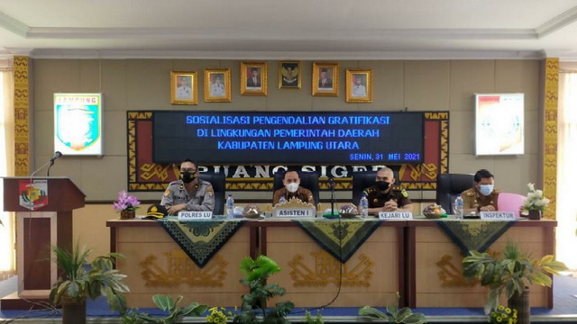 Pemerintah Kabupaten (Pemkab) Lampung Utara menggelar Sosialisasi Pengendalian Gratifikasi di lingkungan Pemkab setempat. Kegiatan yang menghadirkan pihak Kejari dan Polres Lampura sebagai narasumber tersebut berlangsung di Ruang Siger Setdakab Lampung Utara, Senin (31/05/2021) lalu.