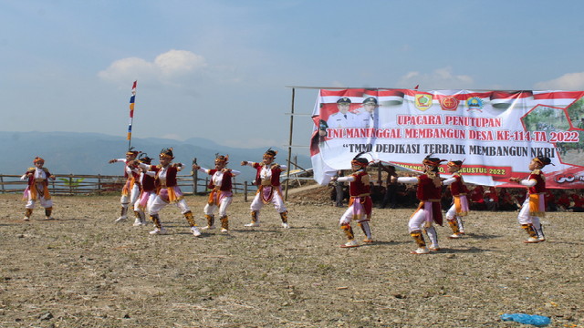 Wonogiri. – Kegiatan penutupan TNI Manunggal Membangun Desa (TMMD) Sengkuyung tahap II Kodim 0728/Wonogiri, yang digelar di puncak Kraguman dimeriahkan dengan Tari Kerincing Wonogiren , Rabu(24/8).