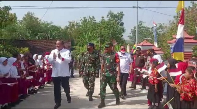 Boyolali – Ratusan pelajar dari Sekolah Dasar Negeri (SDN) Jerukan 1 dan SD N Juwangi 1 dan SD N Juwangi 2 , berjejer di jalan menuju lokasi upacara penutupan program TMMD Reguler ke 114 Kodim 0724/Boyolali untuk menyambut kedatangan rombongan pejabat dari Kodim 0724/Boyolali dan Pemkab Boyolali.