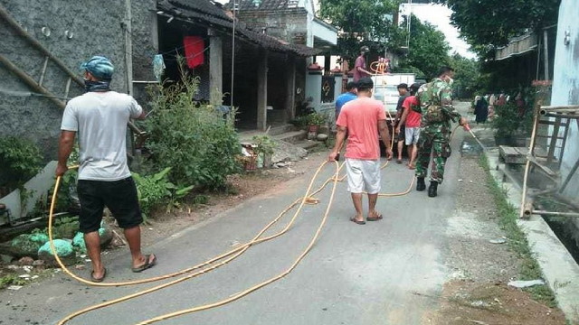 Sukoharjo.- Upaya pencegahan penyebaran covid-19 di Dk. Kleco RT 01/RW 03 Ds. Ngombakan Kec. Polokarto, bersama dengan warga masyarakat melakukan penyemprotan Disinfektan. Senin, 07/06/2021.