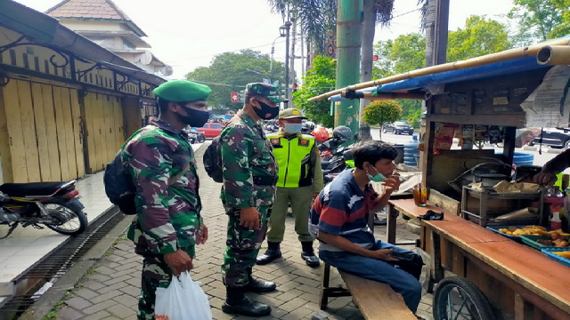 Surakarta.- Babinsa Kelurahan Kemlayan Koptu Catur Handoko Koramil 03 Serengan Kodim 0735 Surakarta melaksanakan pengecekan PPKM di Sepanjang Jalan Veteran Serengan Kota Surakarta, Sabtu 27/03/2021.