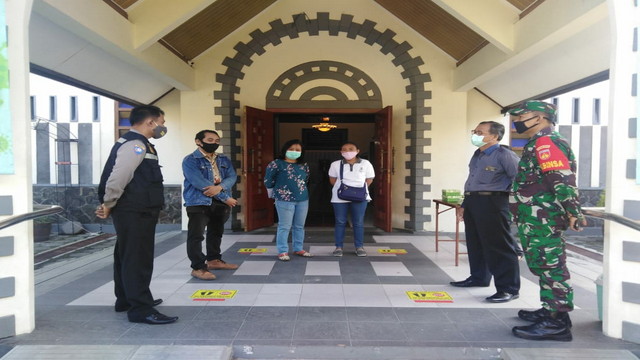 Tampabatas.com(SMSI), Surakarta.- Wujud nyata Sinergitas Aparat keamanan ( TNI- polri) dengan instansi terkait dalam penangan virus Pendemi Covid 19 di wilayah Surakarta Khususnya di Greja Margoyudan, Minggu 19/7/2020 Babinsa Kelurahan Gilingan Koramil 02/ Banjarsari kodim 0735/ Surakarta Sertu Fajar Hartono bersinergis dengan Bhabinkamtibmas Aipda Bayu aji dan dibantu Security Doni Melaksankan kegiatan Cipta Kondisi bertempat di Greja Margoyudan Jl.Monginsidi no 44 Kelurahan Gilingan Kecamatan Banjaraari Surakarta.