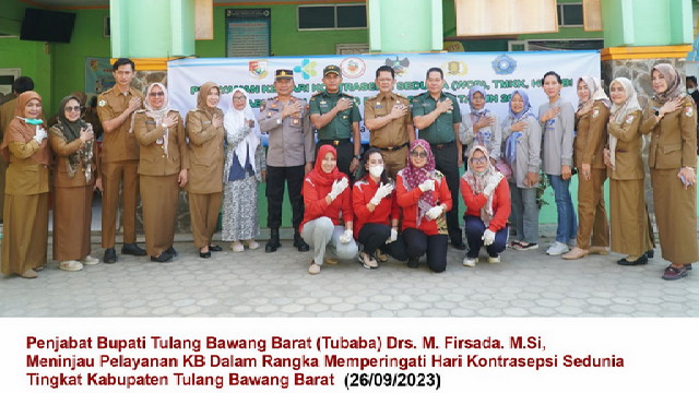 Penjabat (Pj) Bupati Tulangbawang Barat Drs. M. Firsada, M.Si meninjau pelayanan KB dalam rangka memperingati hari kontrasepsi sedunia tingkat Kabupaten Tulang Bawang Barat, Selasa (26/9/2023) di Puskesmas Daya Murni Kec. Tumijajar, Tubaba.