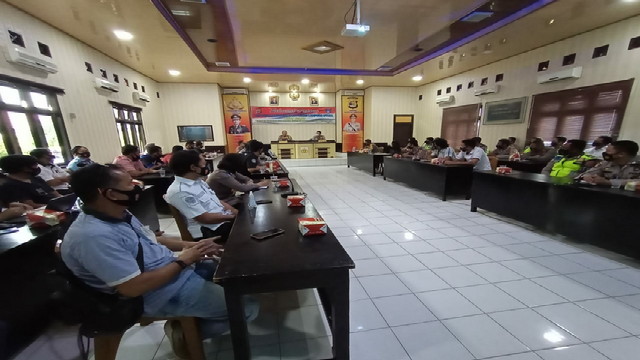 Kepada mereka, petugas gabungan memberikan nasehat tentang pemberlakuan PPKM darurat di masa pandemic saat ini dan memberikan masker.