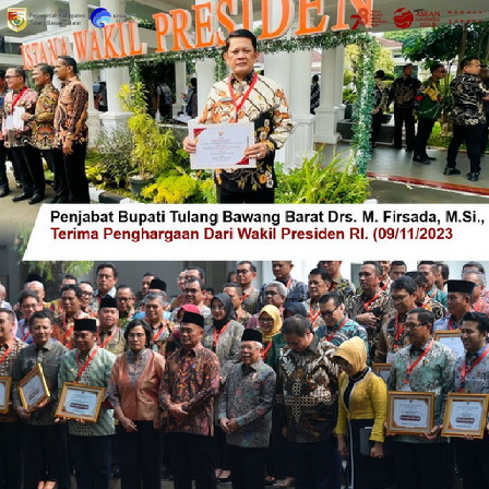Wakil Presiden Republik Indonesia Prof. Dr. (H.C.) K.H. Ma’ruf Amin, memberikan secara langsung piagam Penghargaan Insentif Fiskal Kinerja kepada Penjabat (Pj) Bupati Tulangbawang Barat (Tubaba) Drs. M. Firsada, M.SI., yang dilaksanakan di Istana Wakil Presiden Jl. Medan Merdeka Selatan, Jakarta, Kamis (9/12/2023).