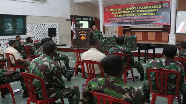 Kegiatan yang dilaksanakan di aula Makodim tersebut diikuti oleh perwakilan anggota dan PNS. Kasdim Mayor Inf Nurul Muthahar, mewakili Dandim 0728/Wonogiri Letkol Inf Imron Masyhadi dalam arahannya menyampaikan, kegiatan pembinaan Mental Fungsi komando ini memiliki makna yang sangat penting, guna memelihara dan meningkatkan mental dan kejuangan kita semua dalam rangka mendukung tugas pokok TNI AD.