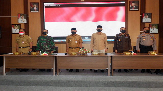 KARANGANYAR. – Komandan Kodim 0727/Karanganyar Letkol Inf Ikhsan Agung Widyo Wibowo, S.I.P., bersama Bupati Kabupaten Karanganyar Drs. H. Juliyatmono, M.M., menggelar rapat koordinasi persiapan pembukaan TMMD sengkuyung tahap III tahun 2021, bertempat di ruang Podang I Setda Karanganyar. Rabu 08/09/2021.