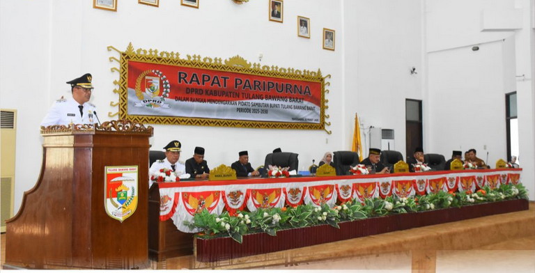 DPRD (Dewan Perwakilan Rakyat Daerah) Kabupaten Tulangbawang Barat melakukan Rapat Paripurna mendengarkan visi kepemimpinan Bupati lima tahun kedepan yang digelar di Ruang Sidang Paripurna DPRD Tubaba. Senin (03/03/2025).