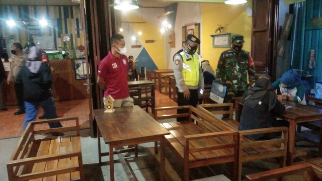 Surakarta. – Babinsa Kelurahan Kestalan Koramil 02/Banjarsari kodim 0735/Surakarta Serda Supriyanto bersama dengan Bhabinkamtibmas Bripka J Caraka dan linmas kestalan dibantu security melaksanakan pengecekan dan pengawasan pelaksanaan PPKM Level 1 di swalayan Luwes Kestalan Jalan S Parman, kestalan, Banjarsari, Sabtu 09/07/2022.