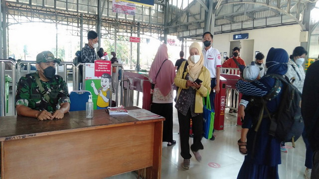 “Maka dari itu kami selaku Babinsa selalu berkoordinasi dengan pihak petugas stasiun dan security untuk menghimbau calon penumpang kereta api yang ada di stasiun untuk tetap mematuhi protokol kesehatan terutama tentang penggunaan masker harus dengan benar serta menjaga jarak antrian.”tuturnya.