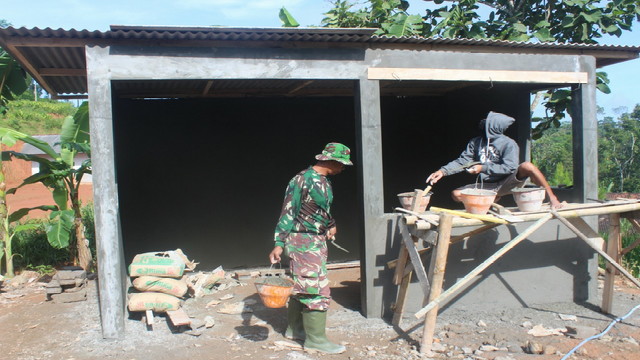 “Sebanyak 2 unit Pos kamling yang dibangun, satu unit telah selesai dan yang satunya sedang kita kebut dalam pembuatannya.”ungkap Pasiter Kapten Inf Moch. Sambudi.