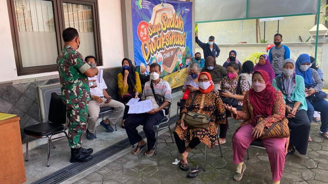 Surakarta. – Babinsa Kelurahan Danukusuman Serda S. Tito anggota Koramil 03 Serengan Kodim 0735/Surakarta didampingi Wakil Kepala SMKN 3 Surakarta Joko Pitono SPD mengecek Sekolahan yang melaksanakan Pembelajaran Tatap Muka (PTM) serta Sosialisasi Prokes, Senin 08/11/2021.