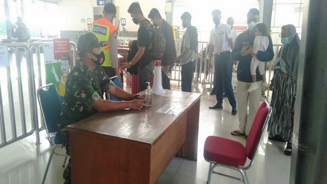 Surakarta, Babinsa Kelurahan Kemlayan Serka A. Rumbawa dan Koptu Catur Handoko Koramil 03/Serengan Kodim 0735 /Surakarta melaksanakan pengecekan Adaptasi Kebiasaan Baru (AKB) dengan superveser, Satpam dan Limas di Pusat Perbelanjaan Matahari Singosaren Departemen Store Jl. Gatot Subroto Kelurahan Kemlayan Kec. Serengan Kota Surakarta, 09/01/2021.