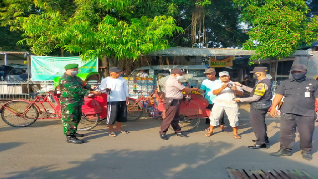 “Untuk memutus penyebaran virus covid-19 kami bersama Satpam Pasar Cinderamata mensosialisasikan PPKM level 4 kepada pengemudi becak dan membagikan masker untuk upaya memutus penyebaran Covid-19.”tutur Sugiyanto disela-sela kegiatan.