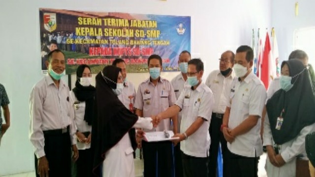 Dinas Pendidikan Kabupaten Tulangbawang Barat (Tubaba) menggelar acara serah terima jabatan Kepala Unit Pelaksana Teknis Sekolah (KUPTS) SD dan SMP se-Kecamatan Tulangbawang Tengah.