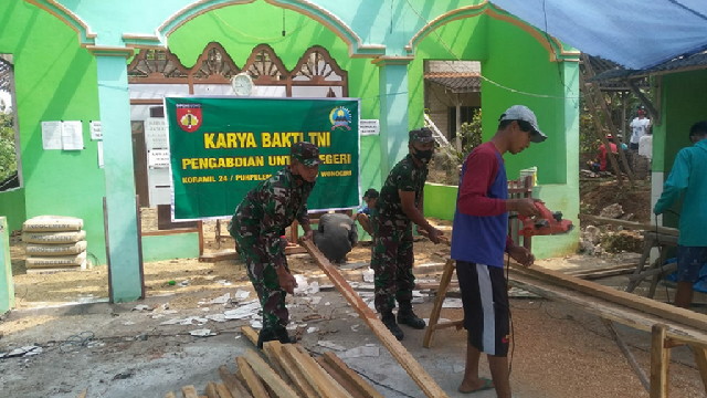 Surakarta.- Babinsa Kelurahan Serengan Koramil 03/Serengan, Kodim 0735/Surakarta Sertu E Lau We melaksanakan pengamanan sekaligus Pengecekan Prokes Ibadah rutin tiap Minggu di Greja BETHEL Taber Nacel Serengan di jln Arjuna nomor 7 Serengan Serengan Kota Surakarta, 30/01/2022.