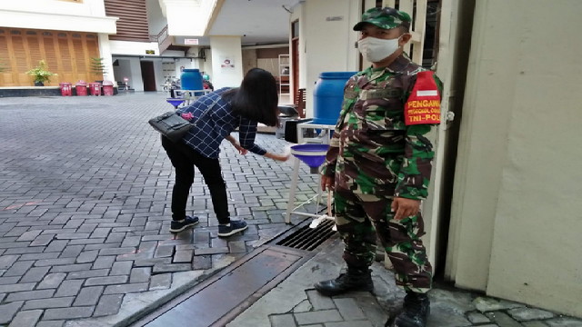 Maka Babinsa Kelurahan Jayengan Koramil 03 Serengan Kodim 0735 Surakarta melaksanakan pengamanan sekaligus cek Protokol Kesehatan (Prokes) kegiatan Ibadah Minggu Pagi di Gereja Kristen Jawa (GKJ) Coyudan dengan Pendeta Lucas Sudarmadji, mengambil Tema : Nyatakan Yesus Sang Metias, dengan jumlah jemaat ± 60 orang, Minggu 12/09/2021.