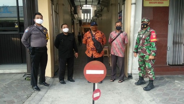 Surakarta.- Bertempat di GKJ, Coyudan Jl. Dr.Rajiman No.125 Kel.Jayengan Kec. Serengan Sertu Rohmad Babinsa Kelurahan Jayengan Koramil 04/Serengan Kodim 0735 Surakarta melaksanakan pengecekan Protokol Kesehatan