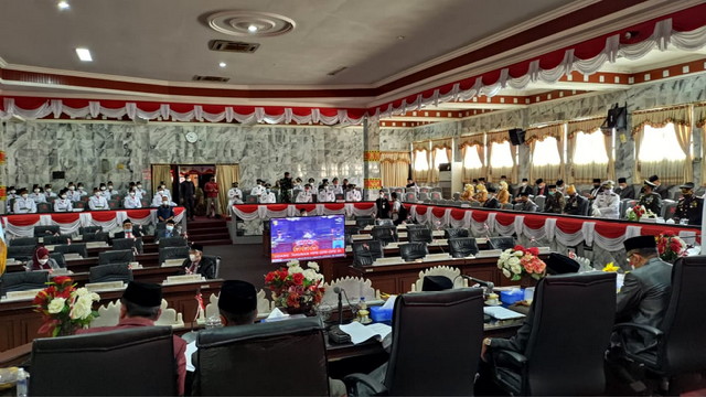 Lampung Urara (Lampura).- Dalam rangka Peringatan Hari Ulang Tahun Republik Indonesia Ke-76, DPRD Kabupaten Lampung Utara mengadakan Sidang Istimewa HUT Republik Indonesia dalam agenda mendengarkan Pidato Kenegaraan, Senin 16/08/2021.