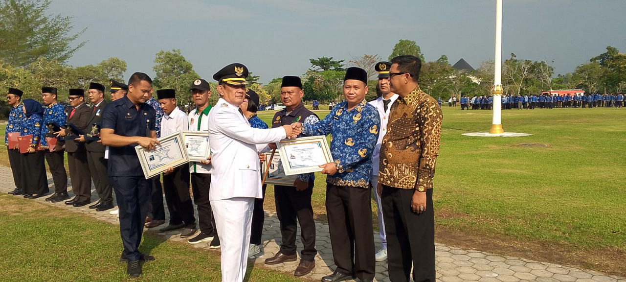 Sepuluh penghargaan diserahkan langsung oleh M.Firsada Pj.Bupati Tulangbawang Barat usai upacara peringatan hari kemerdekaan Republik Indonesia tingkat Kabupaten Tulangbawang Barat di lapangan kantor Pemkab Tubaba pada Sabtu (17/08/2024).