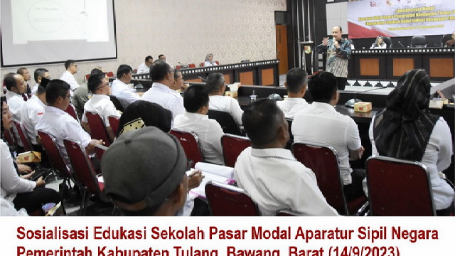 Otoritas Jasa Keuangan (OJK) bersama Pemerintah Kabupaten (Pemkab) Tulangbawang Barat (Tubaba) menggelar SOSED (Sosialisasi dan Edukasi) Pasar Modal bagi para Aparatur Sipil Negara (ASN) dan Penggiat Desa/Tiyuh Inklusi Kabupaten Tubaba, yang berlangsung di Ruang Rapat Bupati, Kantor Pemda kabupaten setempat. Kamis, (14/09/2023).
