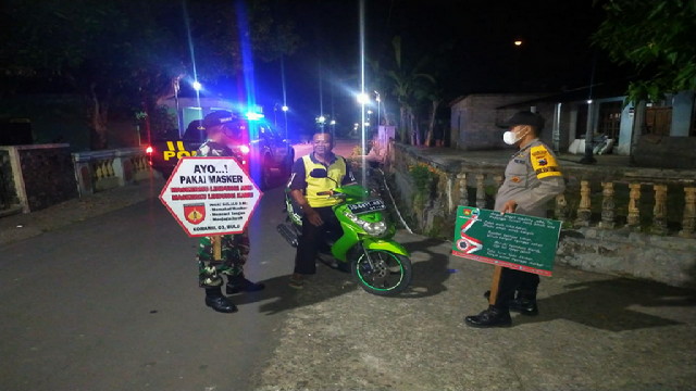 Sukoharjo.- Untuk menyukseskan program PPKM Mikro sebagai upaya menekan penyebaran Covid-19 diwilayah Kabupaten Sukoharjo, Koramil 03/Bulu dan Polsek Bulu melaksanakan patroli malam berikan himbauan kepada masyarakat supaya mematuhi protokol kesehatan (Prokes) saat pandemi Covid-19, Selasa 25/05/2021 malam.