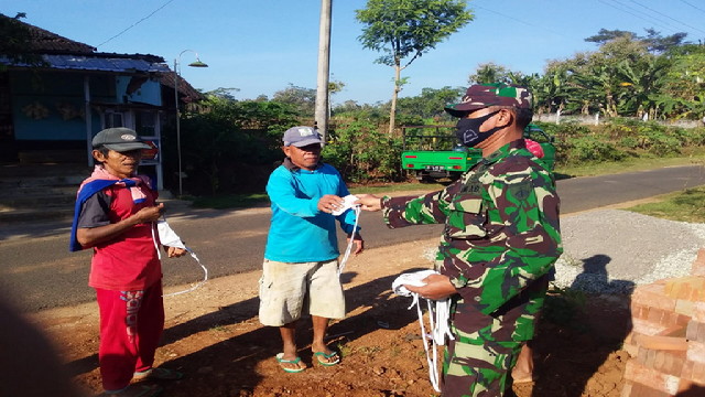 Seperti halnya yang dilakukan oleh anggota Koramil 17/Sidoharjo Pelda Kahana dan Srda Sunarno dengan memberikan himbauan protocol kesehatan utamanya pemakaian masker saat beraktivitas diluar rumah serta pembagian masker, Senin 13/09/2021.