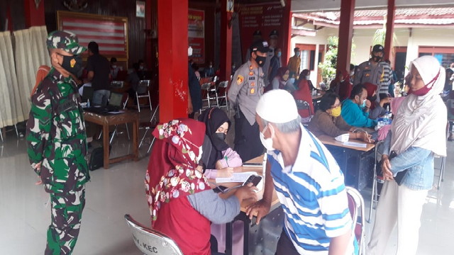 “Dalam pelaksanaannya, warga yang akan menerima vaksinasi harus melalui beberapa tahapan, mulai dari mengisi pendaftaran, cek tensi dan suhu badan dan screening oleh petugas kesehatan, bila memenuhi syarat dan dinyatakan sehat baru dilaksanakan Vaksinasi. Setelah di vaksin peserta harus menunggu kurang lebih 30 menit untuk mengantisipasi terjadinya reaksi terhadap Vaksin,” terang Sertu Ngatinu