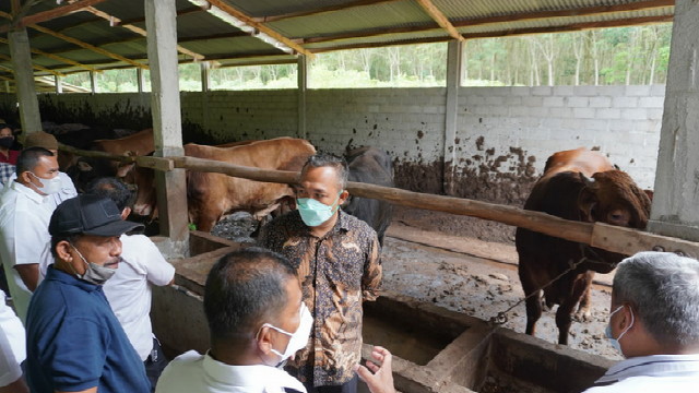 Foto: Bupati Tubaba Umar Ahmad tinjau ternak sapi (pakai masker warna hijau).