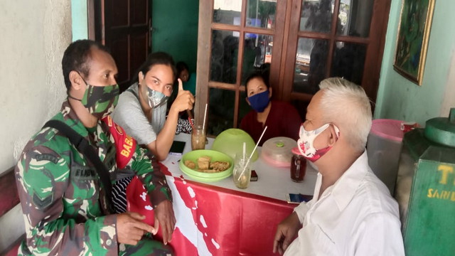 Danramil Kapten Inf Tono membenarkan apa yang dilakukan oleh anggotanya tersebut, yang bersama-sama dengan anggota Polsek Puhpelem memberikan edukasi dan himbauan penerapan protocol kesehatan.