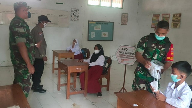 Sebelum kembali ke Koramil 03/Serengan, Pelda Tukiman menyambangi warga yang berada di pos Linmas.