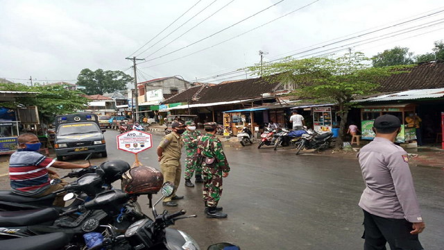 BOYOLALI.- Anggota Koramil 19/Juwangi Kodim 0724/Boyolali bersama anggota Polsek Juwangi dan Pol PP menggelar operasi yustisi Pemberlakuan Pembatasan Kegiatan Masyarakat (PPKM) dalam rangka menekan penyebaran virus Corona. Sasaran dalam operasi ini adalah pendisiplinan warga yang tidak bermasker di Pasar Juwangi Kabupaten Boyolali. Senin 08/02/2021.