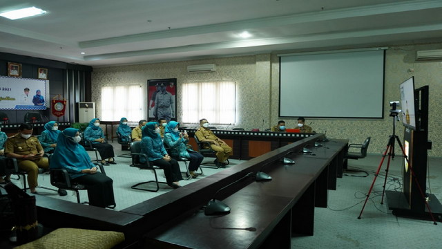 Ketua TP-PKK Tulangbawang Barat Hj.Kornelia Umar SH, MH menghadiri Rakerda(Rapat Kerja Daerah) TP-PKK Provinsi Lampung tahun 2021 di Ruang Rapat Bupati Rulangbawang Barat, Senin 31/05/2021.