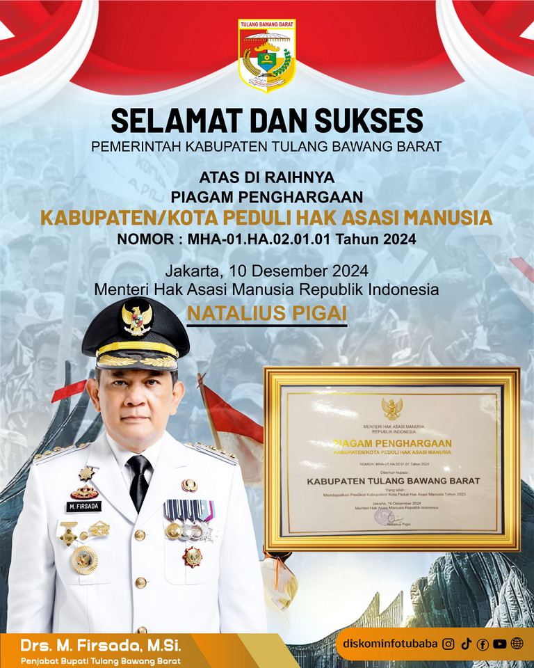 Penghargaan ini merupakan bentuk apresiasi atas upaya dan kerja keras Kabupaten Tubaba dalam mewujudkan penghormatan, perlindungan, pemenuhan, penegakan, dan pemajuan Hak Asasi Manusia (P5HAM).