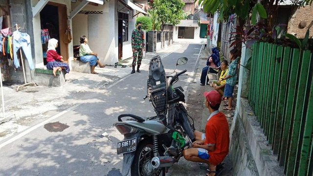 Surakarta.- Kapten Inf Paidi Danramil Jebres Kodim 0735/Surakarta beserta Anggota Koramil 04/Jebres Kodim 0735/Surakarta bersama Anggota Polsek Jebres melaksanakan Operasi Yustisi untuk menerapkan protokol kesehatan serta pembagian masker di Jl. Taman Jayawijaya Kel Mojosongo Kec Jebres Kota Surakarta, Senin(31/5/2021)Pukul 08.30 Wib s.d. selesai.