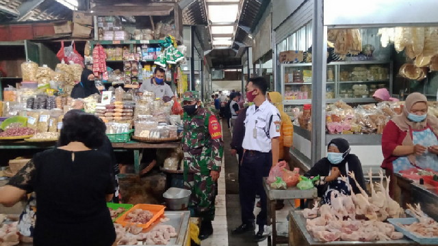 Surakarta.- Pemberlakuan Pembatasan Kegiatan Masyarakat (PPKM) merupakan upaya yang dilakukan oleh Pemerintah Pusat maupun daerah merupakan alternatif paling efektif guna Untuk Menghambat dan memutus Penyebaraan Virus Covid -19 maka dari itu Babinsa Kelurahan Danukusuman Koramil 03 Serengan Kodim 0735 Surakarta Sertu Priyanto bersama Satpam adakan Pengecekan, Sosialisasi dan Himbauan tentang Penerapan PPKM di Pasar Hardjodaksino Danukusuman Kecamatan Serengan Kota Surakarta Senin 12/04/2021.