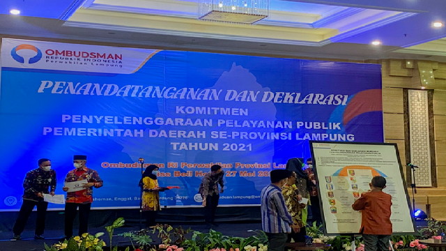 Kepala Ombudsman RI Perwakilan Provinsi Lampung, Nur Rakhman Yusuf, dalam kesempatannya mengapresiasi para Kepala Daerah yang hadir dalam kegiatan ini karena merupakan wujud komitmen ingin melakukan perbaikan pelayanan publik di Provinsi Lampung.