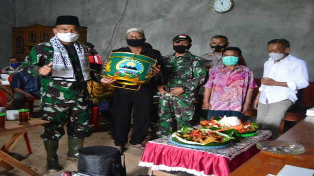 Mewakili Komandan Kodim 0728/Wonogiri Letkol Inf Imron Masyhadi, S. E., Kasdim Mayor Inf Nurul Muthahar, S.Ag., M.Pd., menyerahkan bantuan perlengkapan alat Hadroh kepada pengurus Masjid setempat, bersamaan dengan dilaksanakannya do’a bersama yang dilakukan sebagai wujud syukur kepada Tuhan Yang Maha Esa atas terselenggaranya TMMD di Desa Brenggolo, Senin 22/02/2021.